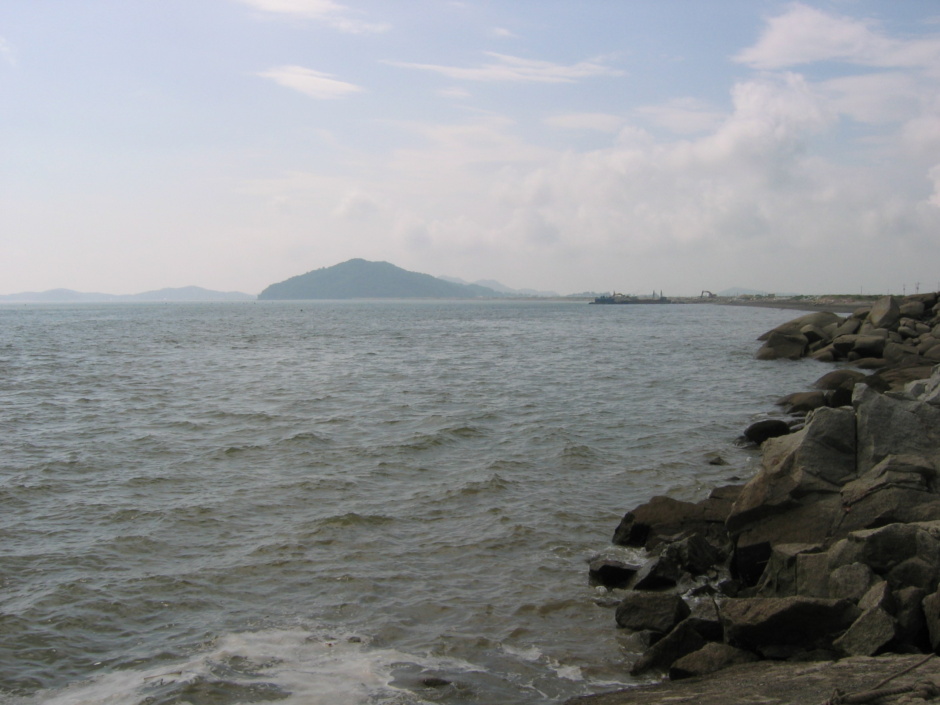 남산포 앞바다에 있는 무인도로서 썰물 때는 멧산(山)자가 되는데