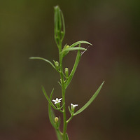 | 잎은 대생하며 거의 엽병이 없고 옆으로 퍼지며 광피침형이고 양끝이 좁으며 둔두이고 밑으로 좁아져서 날개가 있는 엽병처럼 되며 길이 2-4cm, 나비 1-2cm로서 양면에 털이 없고 가장자리에 날카로운 톱니가 있다. | |