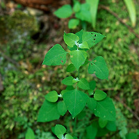 | 아래쪽의 잎은 대생이고, 위쪽은 호생이며 삼각상 난형 또는 능상 난형으로 길이 2~5㎝, 나비 1.5~4㎜이다. 엽질이 엷고 끝은 뾰족하며 밑부분의 가장자리는 종종 삼각상으로 퍼지고 표면은 짙은 녹색이고 뒷면은 회록색으로 백분이 있으며 엽병은 1~2㎝이다. | |