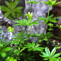 | 잎은 6개가 윤생하며 그 중 2개는 정상엽이고 4개는 탁엽에서 발달한 것이며 긴 타원형이고 길이 2.5~4cm, 폭 7~10mm로서 끝이 둥글며 주맥 끝이 돌출하고 밑부분이 좁으며 중륵이 대개 평활하고 가장자리가 밋밋하며 엽병이 거의 없다. | |