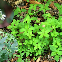 | 잎은 대생하고 4열성으로서 3-5개로 다소 깊게 갈라져 장상으로 되며 열편은 피침형 또는 도피침형이고 큰 톱니가 있다. 전체적으로 약간의 털이 있다. | |
