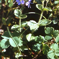 | 잎은 어긋나며 엽병이 길고, 3-5갈래로 전열(全裂)되며 열편은 능형(菱形)이고 다시 갈라진 피침형의 최종열편은 끝이 뾰족하다. | |