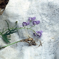 | 뿌리는 마늘쪽처럼 굵고 육질이다. 괴경을 지리초오(智異草烏)라 한다. | |