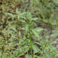| 잎은 대생하며 엽병은 극히 짧고 난상 타원형 또는 피침형이며 밑이 좁고 끝이 뾰족하며 가장자리에 잔톱니가 있다. 중앙부의 잎은 길이 1.5-9cm, 폭 5-33mm이지만 위로 갈수록 작아진다. | |