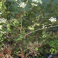 | 뿌리를 산방풍(山防風), 식방풍(植防風)이라 한다. 땅속 뿌리는 굵고 목부분은 섬유질이 많다. | |
