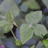 | 근생엽과 밑부분의 잎은 엽병이 길고 2회 3출복엽이며 소엽은 5-9개이고 넓은 난형이며 둔두 또는 원두이고 예저이며 길이 2~3.5cm, 폭 1.5-3cm로서 불규칙한 결각상의 톱니가 있거나 3개로 갈라지고 표면에 털이 약간 있으며 뒷면에 짧은 털이 밀생하고 끝부분의 잎은 3-5개의 소엽으로 되며 엽병이 없다. | |