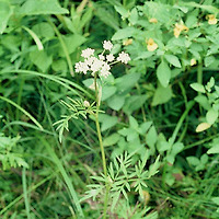 | 꽃은 8-9월에 피며 원줄기 끝과 가지끝의 큰 산형화서에 달리고 총산경은 15-20개, 소화경은 20-22개이다. 포엽은 0-2개로서 총산경보다 짧으며 피침형이고 소포는 1-5개가 소화경보다 길며 꽃받침잎은 절두로서 밋밋하고 꽃잎은 5개로서 도란형이며 안으로 굽고 백색이다. 자방은 타원형이며 길이 0.5-1.5mm로서 녹색이고 수술은 5개이며 꽃밥은 자주색이다. | |