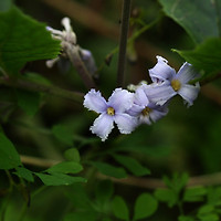 | 잎은 대생하며 3출복엽이다. 소엽은 다소 혁질이고 넓은 난형이며 길이 6-15cm로서 첨두이고 넓은 예저 또는 절저이며 양면이 모두 거칠고 털이 약간 있으며 불규칙한 치아상 톱니가 드문드문 있으나 흔히 3개의 얕은 결각이 생긴다. 뒷면에는 구부러진 털이 있고 주맥이 현저히 돌출하며, 엽병은 길이 15cm이고 털이 있다. | |