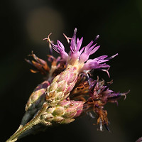 | 꽃은 8월에 피며 두화는 끝에 1개가 달리고 1~5개의 선상엽으로 둘러싸이며 마른 것은 지름 23~30cm이고 화서에 침상의 털이 있다. 총포편은 4줄로 배열되며 외포편은 난형 예두이고 내포편은 긴 타원상 선형으로서 털이 밀생한다. 화관은 자주색이며 길이 13~15mm이고 관모는 2줄이며 길이 11~12mm로서 갈색이고 털이 있다. | |