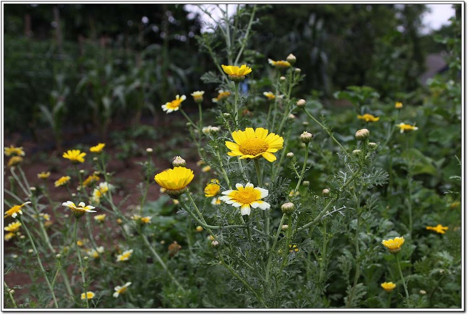 ▽ 쑥갓도 질세라... 국화 못지 않게 이쁘게 피었다.