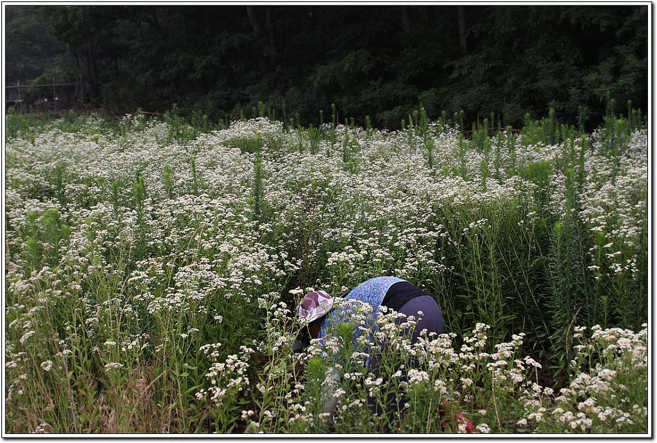 ▽ 꽃을 베는 여인...알고 보니 가뭄의 묵은 밭에 무성히 핀 개망초를 베는 할머니, 꽃을 든 여자였다.