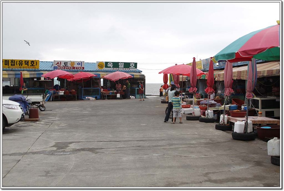 ▽ 창후리 포구엔 늘 그렇듯 한산해 보인다. 생새우, 마른 새우를 비롯, 새우젖이 많은 편이지만 어판가게마다 배를 갖고 있어서 때를 잘 만나면 싱싱한 횟감도 맛 볼 수 있다. 요즘엔 숭어회를 비롯, 병어, 밴뎅이가 출하된다.