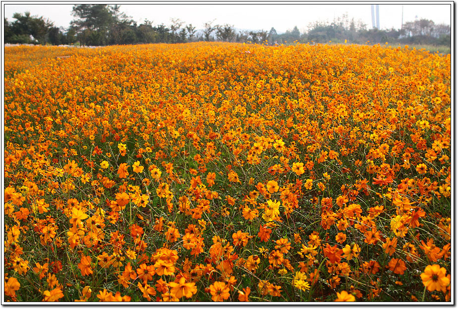 ▽ 노랑코스모스(황화코스모스)가 보는 이의 마음을 사로잡는다. 6월에 이곳에 같은 색깔의 군락으로 꽃을 피웠던 캘리포니아 양귀비가 생각난다.