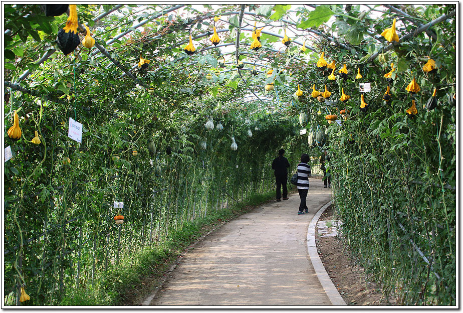 ▽ 각종 화초열매들이 아늑한 터널에서 신기한 모습으로 열려있다.