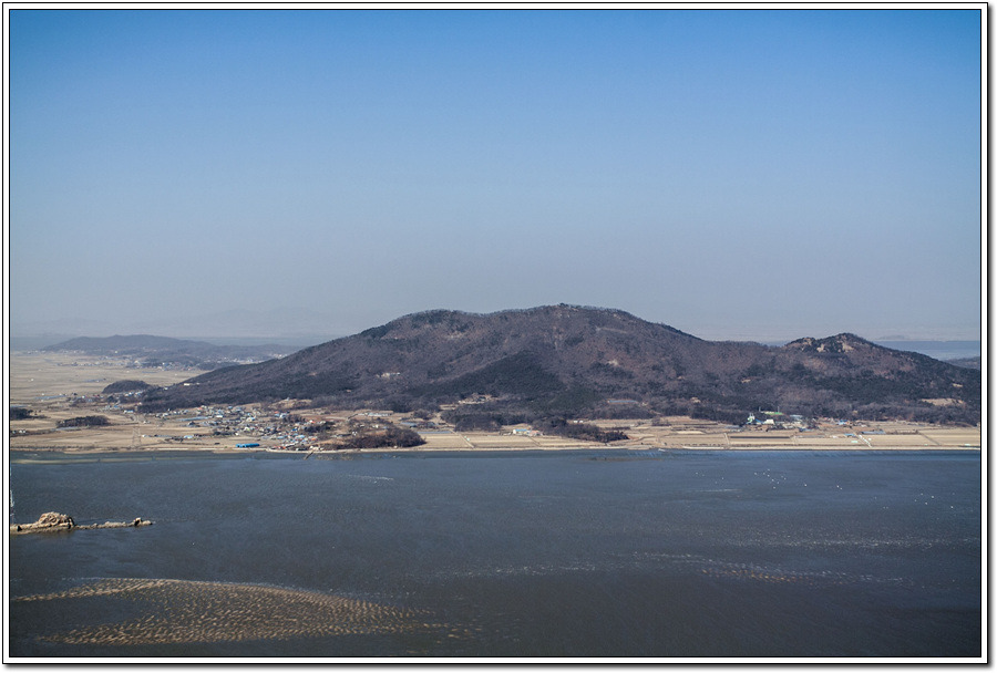 ▼ 교동의 화개산이 다 드러나고 그 아래 동네인 읍내리가 조망된다.
