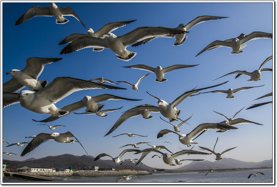 ▼ 늘 그렇듯 인간이 주는 먹이에 갈매기들은 길 들여져 있고 보답이라도 하듯 즐거움을 주고 있다.