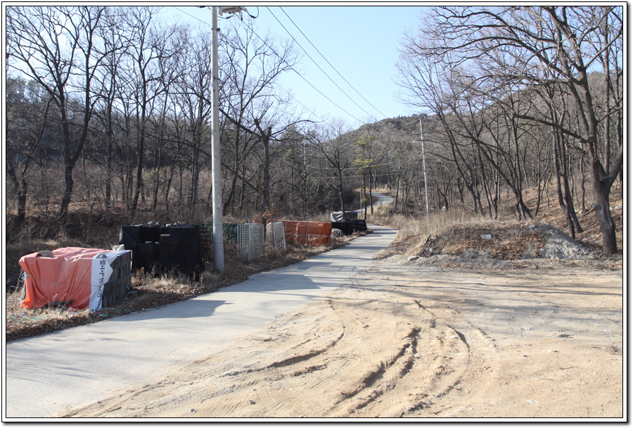 ▼ 들녘의 콘크리트 길옆에 길게 파 놓은 흙더미는 수로공사로 인한 것이다.