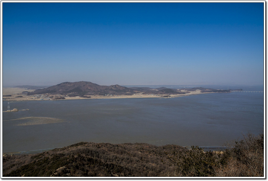 ▼ 서둘러 하산해서 귀가하며 아쉬움에 다시한번 상주산과 오른쪽 별립산, 그리고 가운데 교동연륙교를 바라보며 한컷 했다.