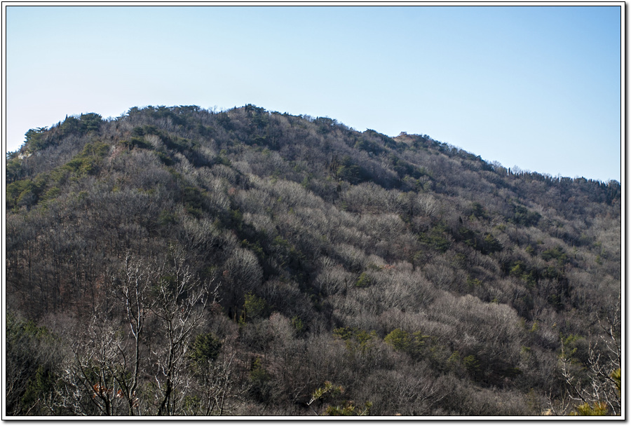 ▼ 상리에서 새넘어 고개를 시작으로 산을 오르다 보면 상주산 반대쪽의 이어지는 능선줄기의 나무숲이 수묵화를 그려 놓은 듯 보기 좋다.