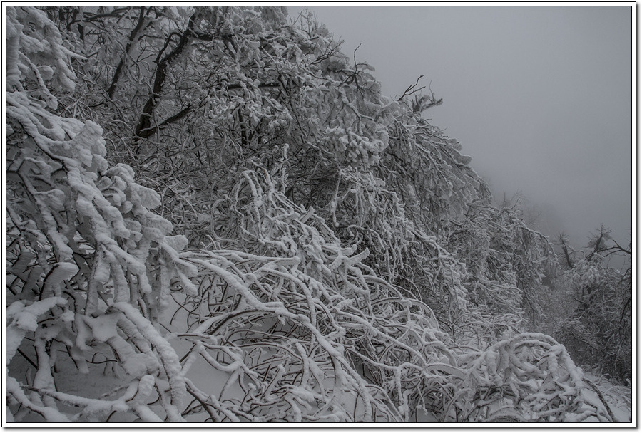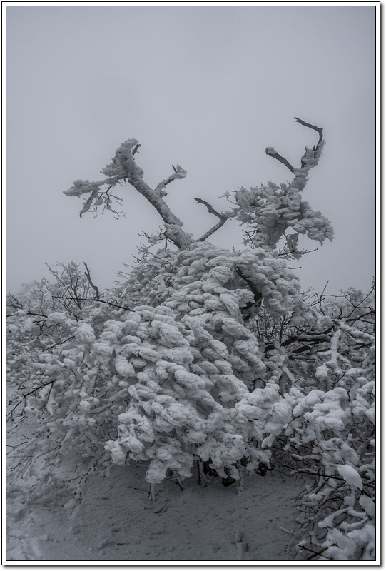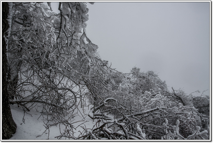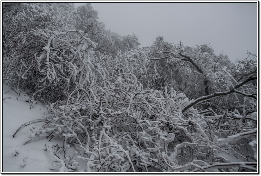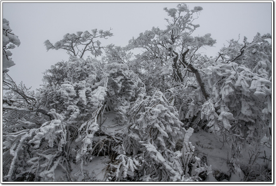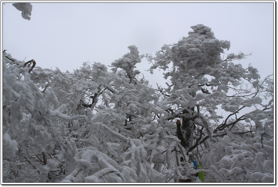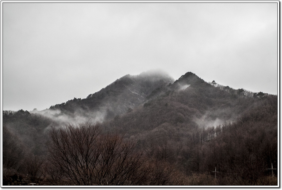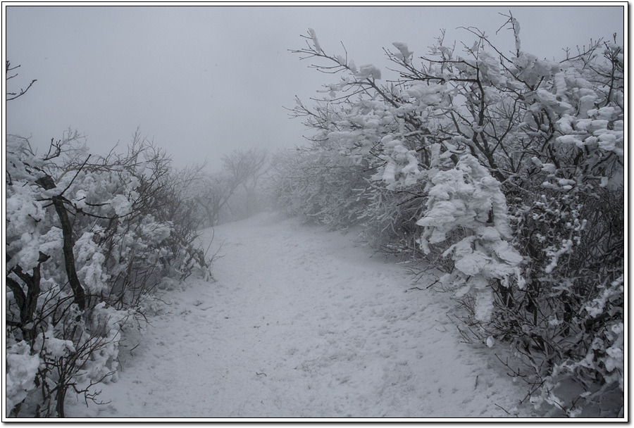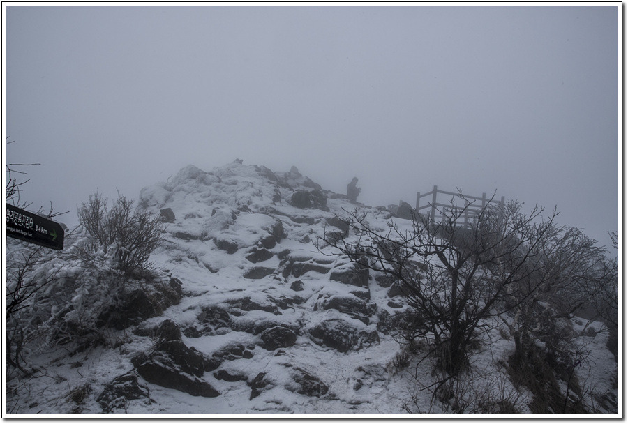 다시 한번 오르게 된 것이다. 그러나 자연은 늘 그렇듯 사람 뜻대로 일기를 주지 않는다. 설연휴에 마음 먹고 멋진 설경을 기대했는데 비가 온다는 예보에 실망을 금할 수가 없었다. 도착하자 마자 한방울씩 내리기 시작하는 비에 운해가 잔뜩 끼어 한치 앞이 보이질 않는다.