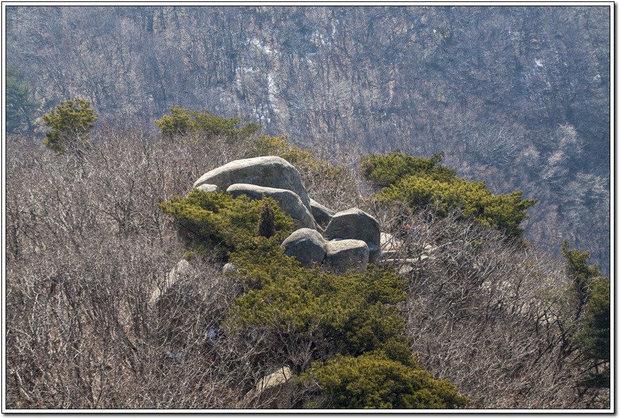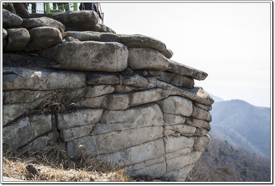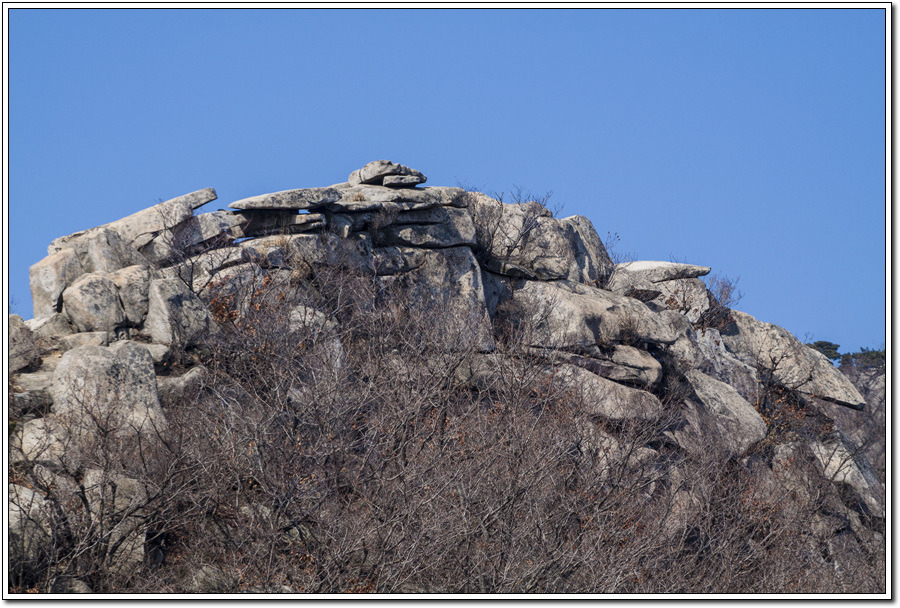 ▼ 마니산은 이와같이 인위적으로 정교하게 쌓은 성이나 단과 같은 바위들이 많다는 것이 특이하다.