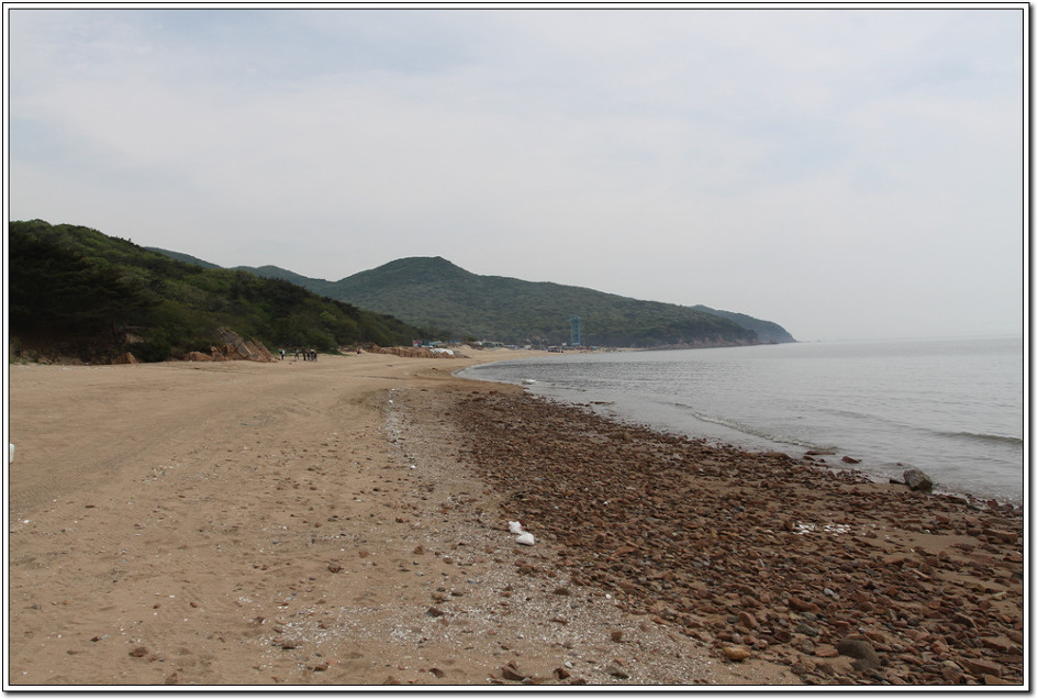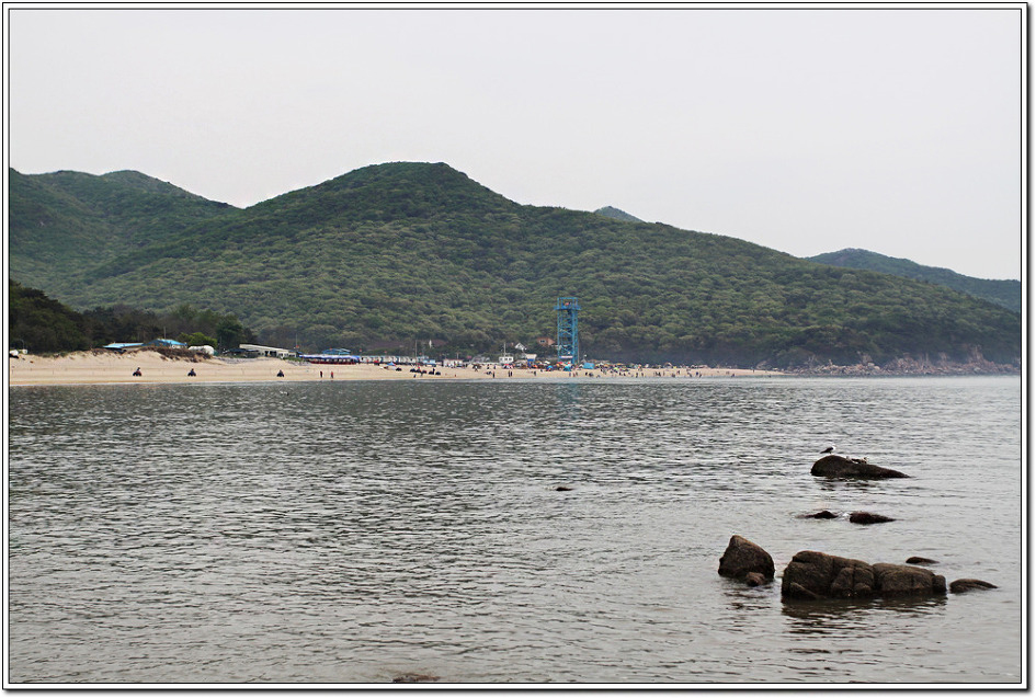 ▼ 해수욕장 능선 넘어로 실미도 일부가 보인다.