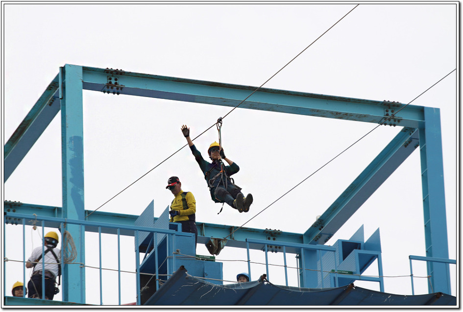 ▼ 쌩뚱맞게 활강장이 생겨 호기심에 도전해 보려는 사람이 많다.