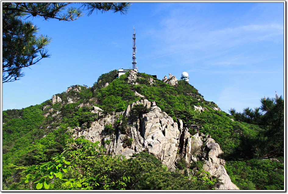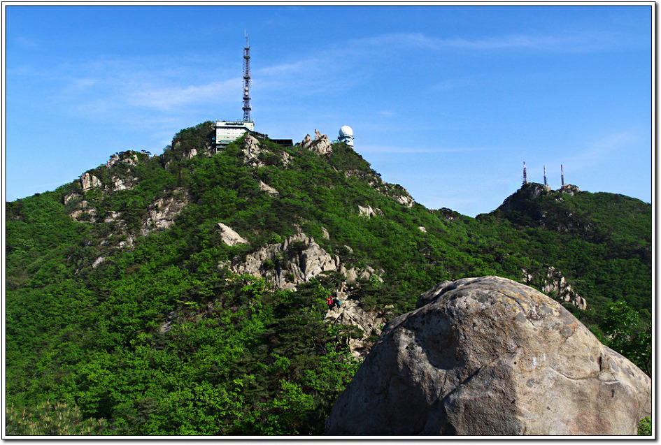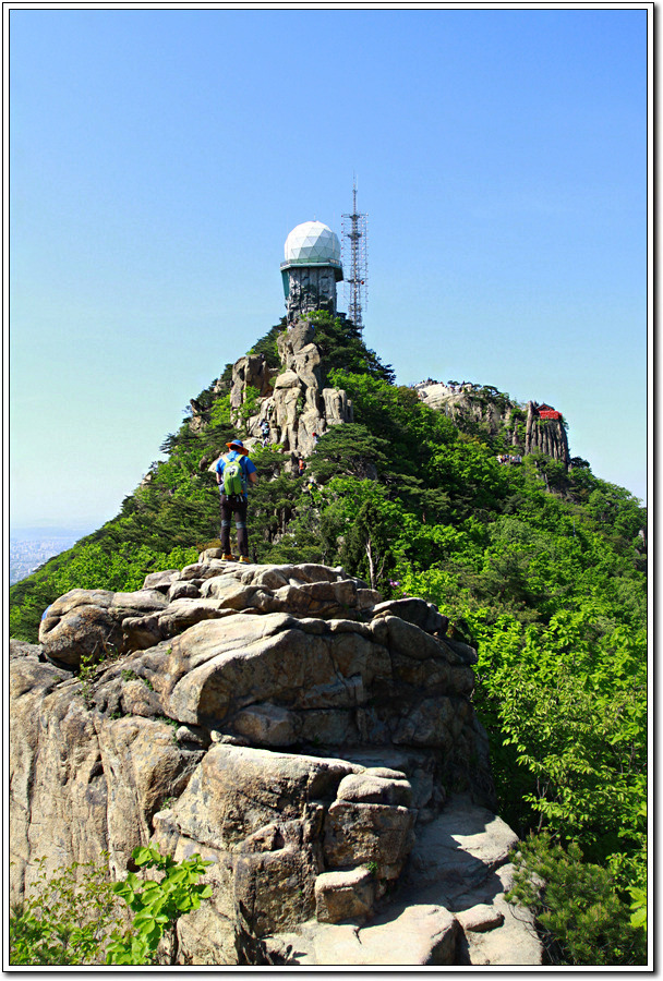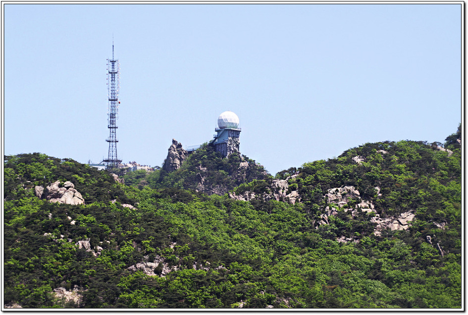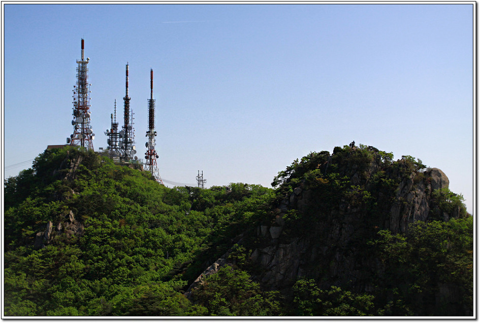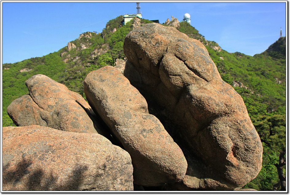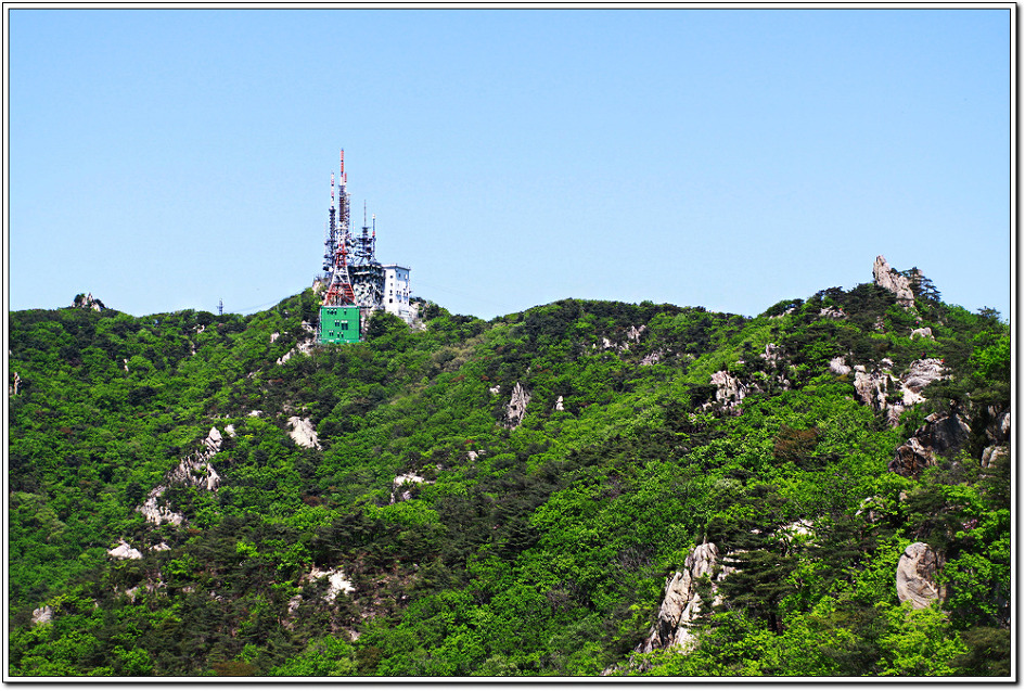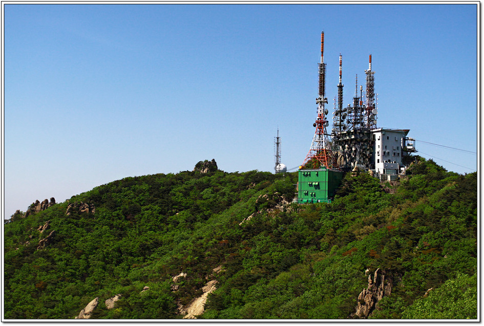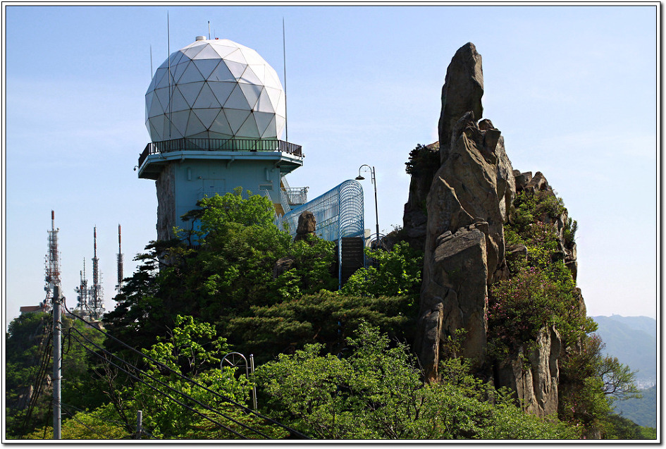 ▼ 바로 아래 연주암과 레이더 기상관측소, 정상부의 연주대...