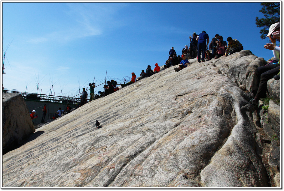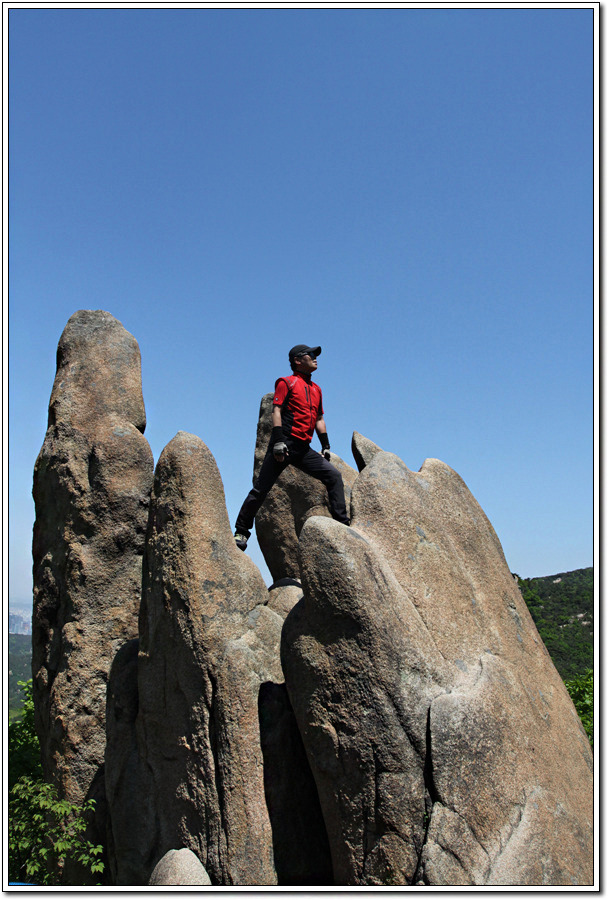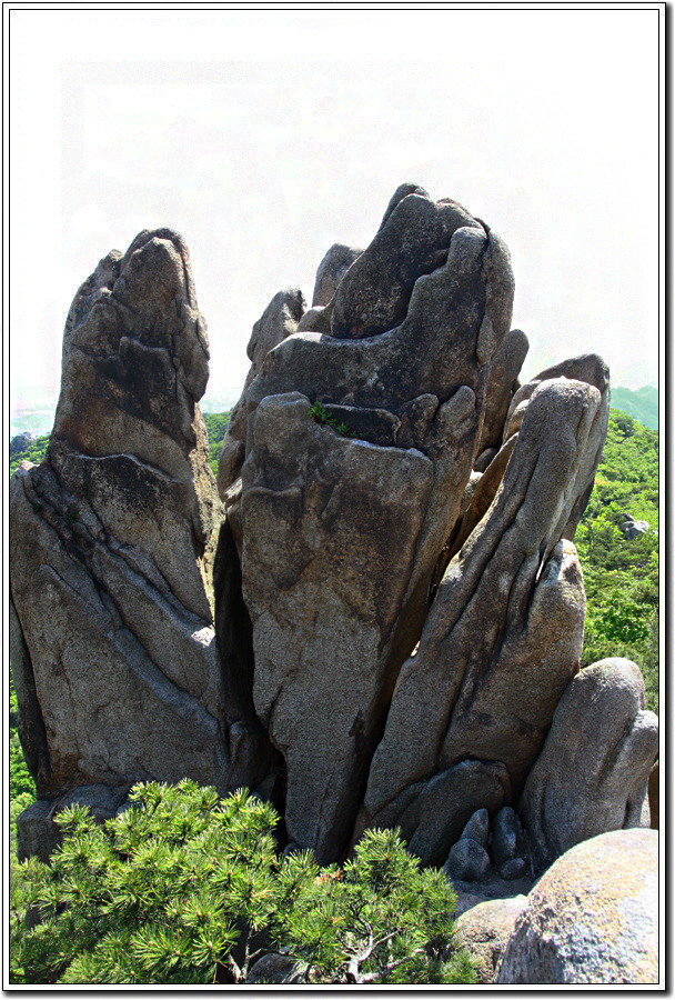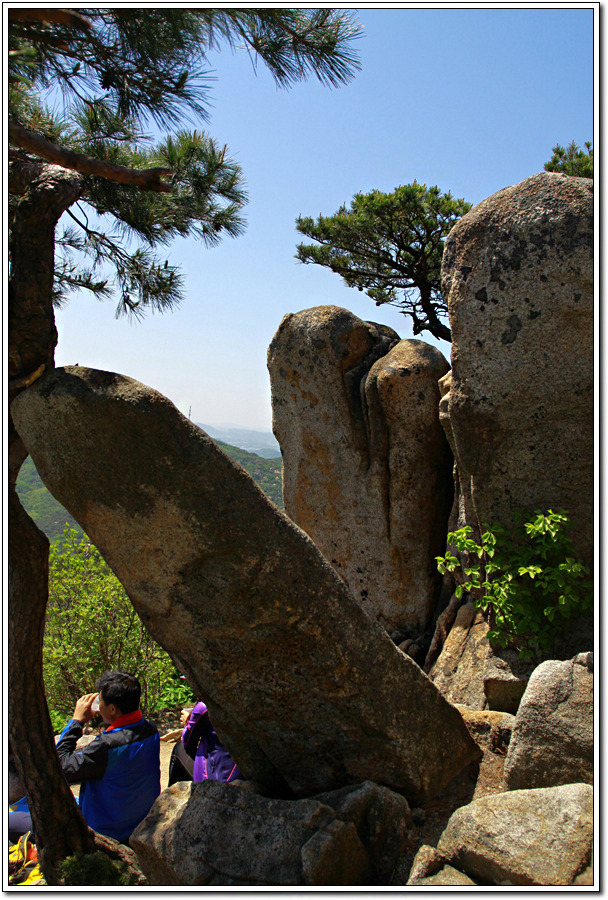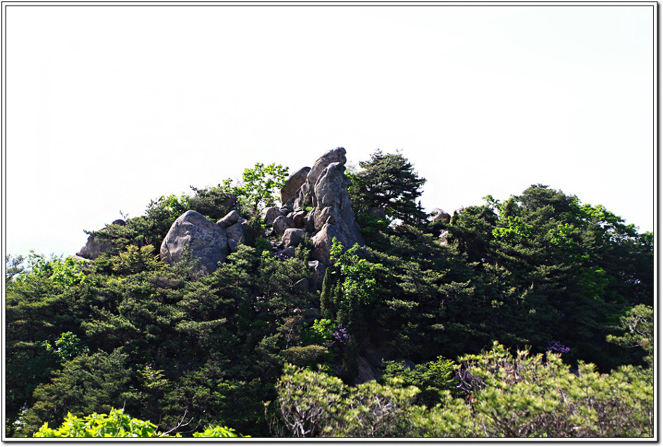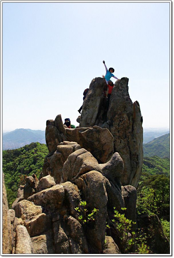 ▼ 어느 정도 오르니 해산바위가 먼저 반긴다. 그새 회원들은 획~ 바위에 올랐다.
