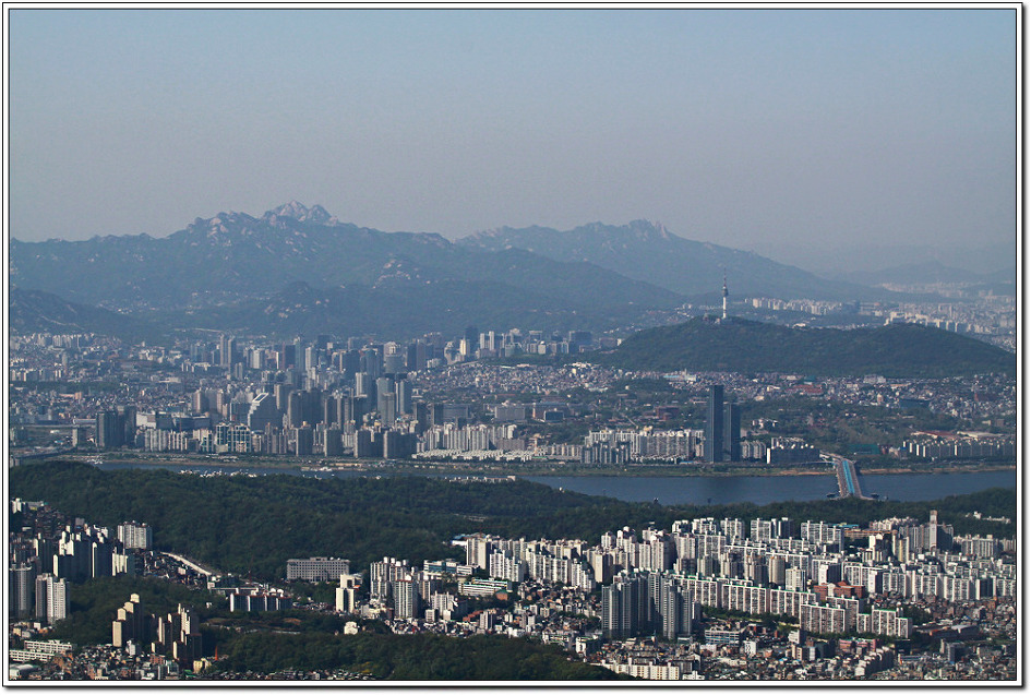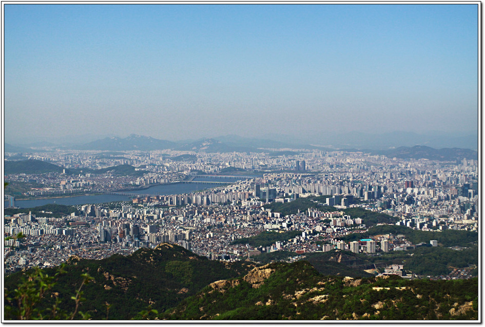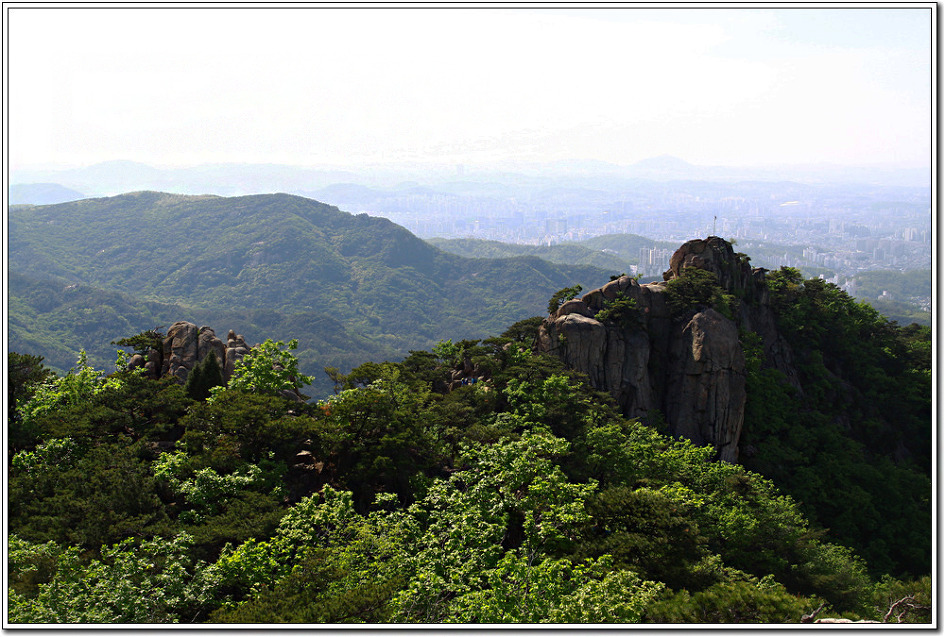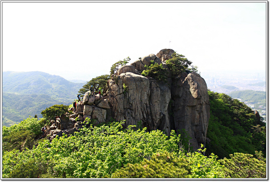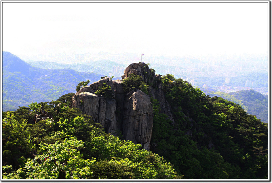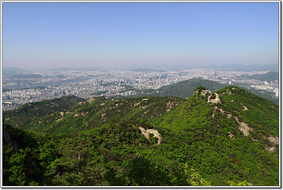 ▼ 정상에서 내려다 본 서울시내, 왼쪽에 남산, 멀리 수락산, 불암산, 오른편에 아차산이 한눈에...