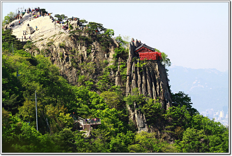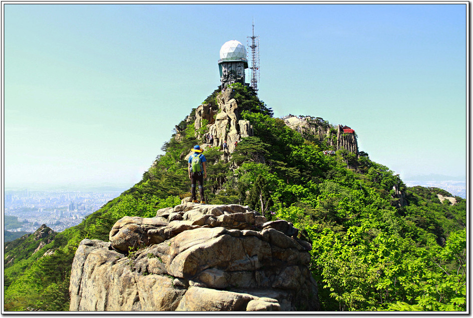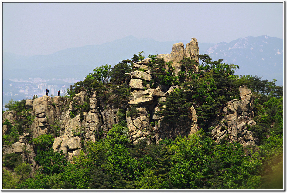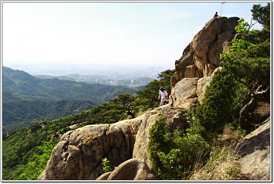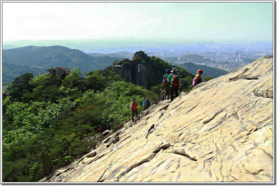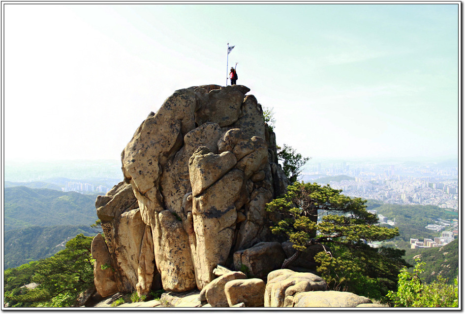 ▼ 정상에서 내려다 본 서울시내, 왼쪽에 남산, 멀리 수락산, 불암산, 오른편에 아차산이 한눈에...