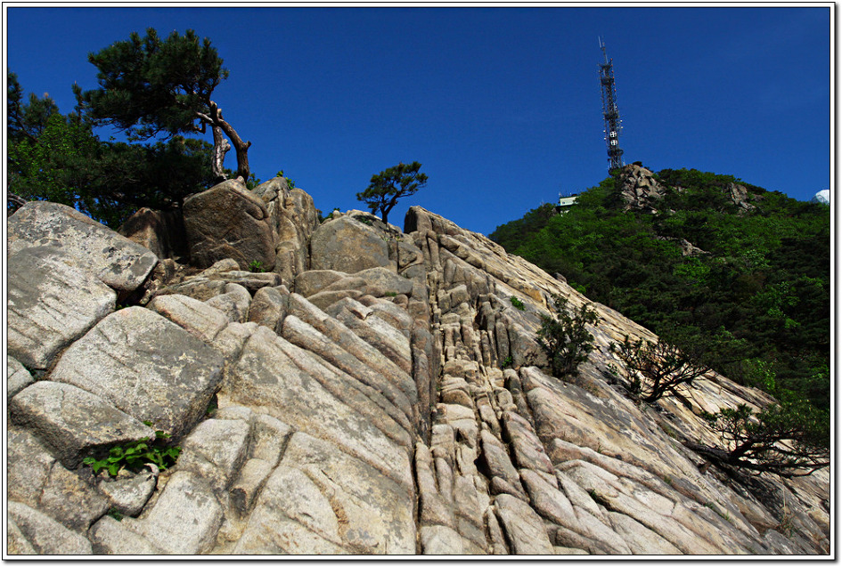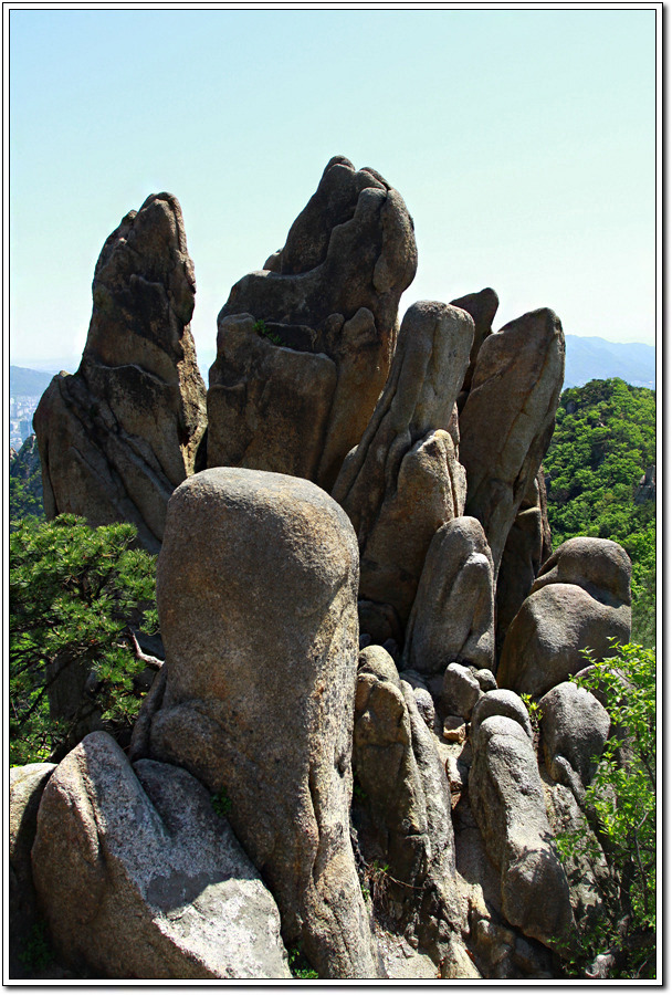 ▼ 예술공원로에서 올려다 본 삼성산 능선의 기암