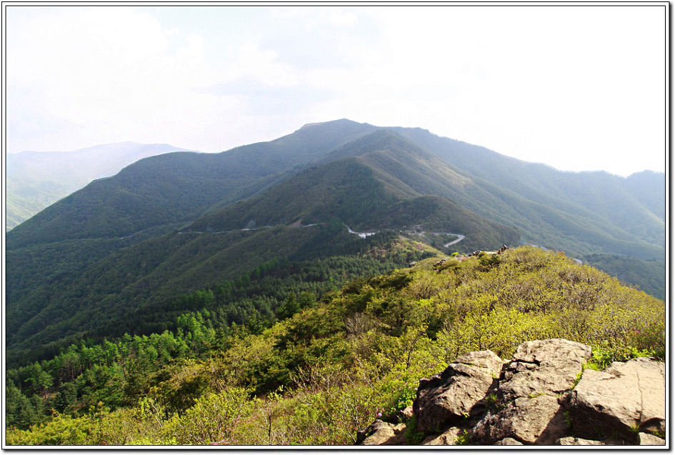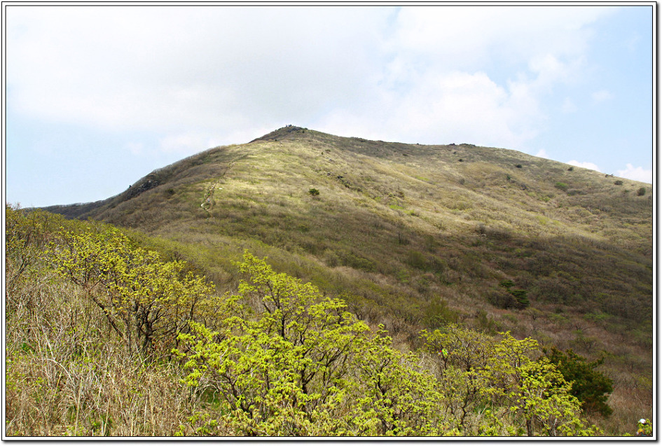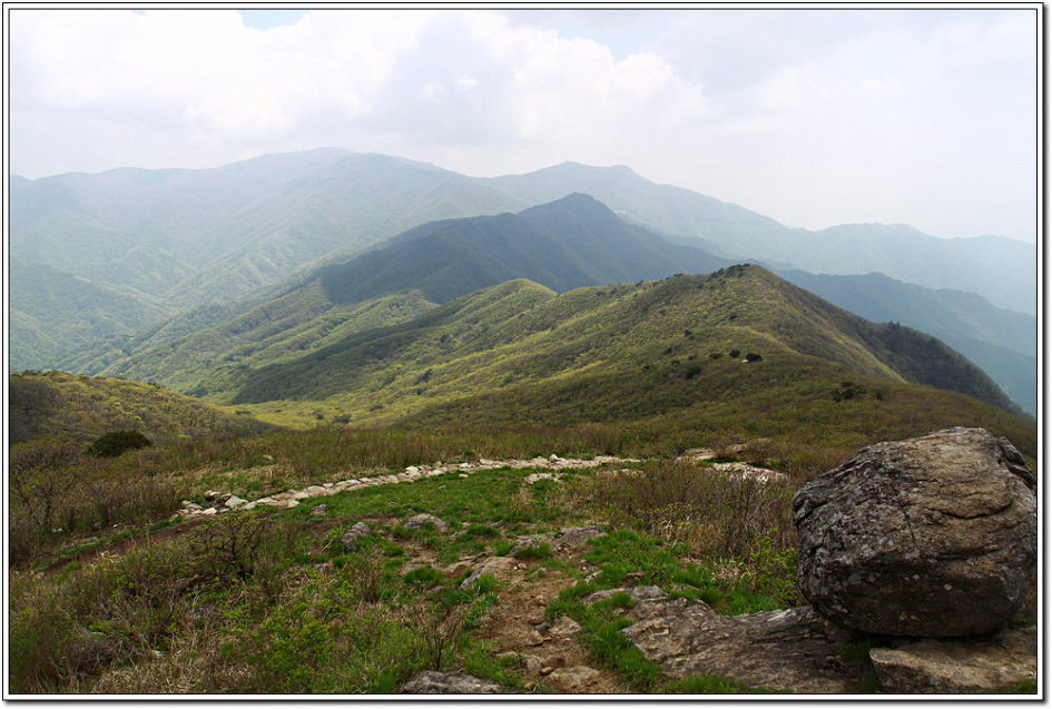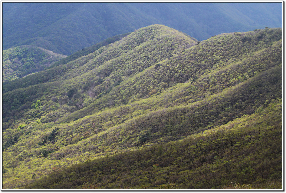 ▼ 새순이 막 돋아나는 잘 뻗어 내린 능선을 뒤로하며 정령치로 향한다.
