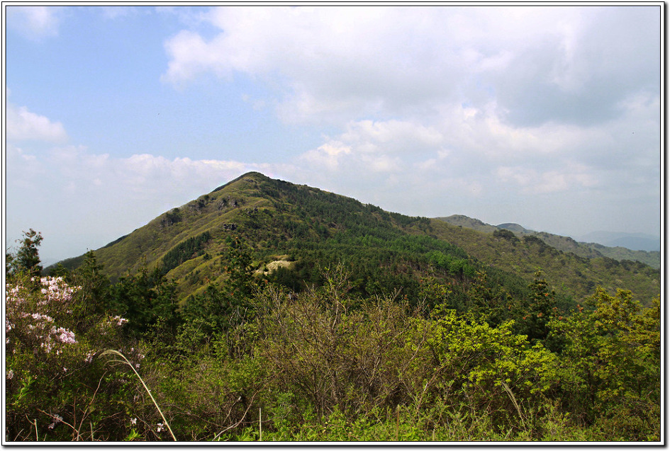▼ 아득히 뾰족한 봉우리가 철쭉으로 유명해진 바래봉이다.