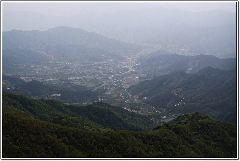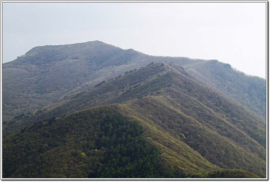 ▼ 이제 하산할 코스를 조망해 본다. 종착 봉우리인 큰고리봉이 보인다.