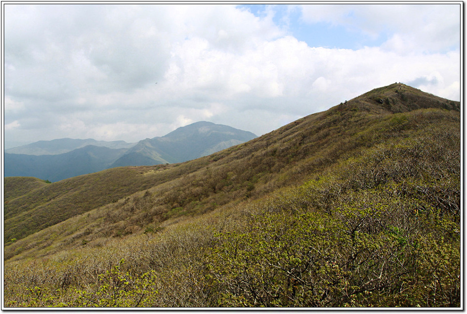 ▼ 뒤돌아 본 작은고리봉으로 부터 이어진 능선, 멀리 노고단과 종석대가 눈에 들어온다.