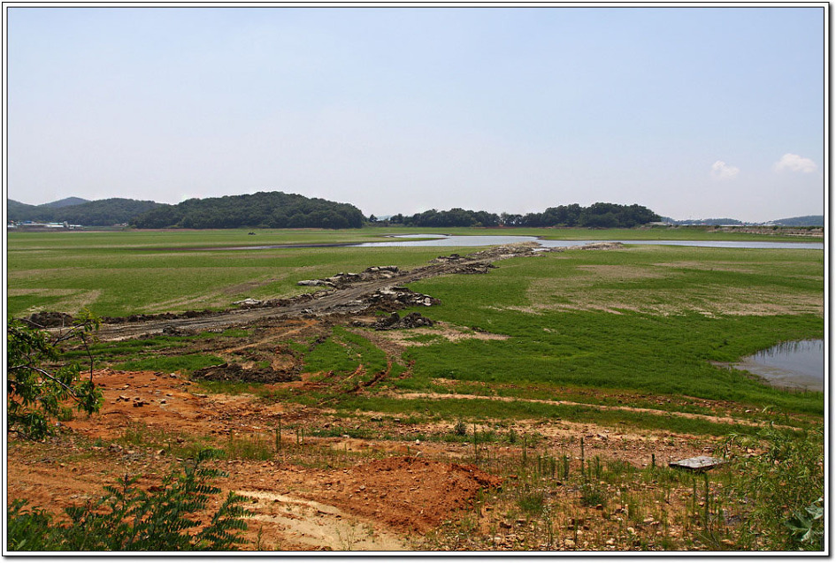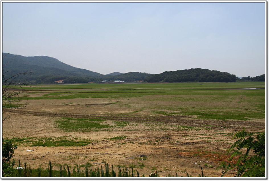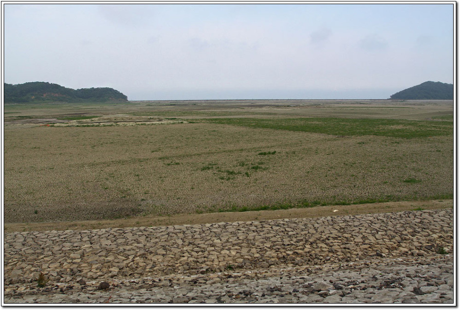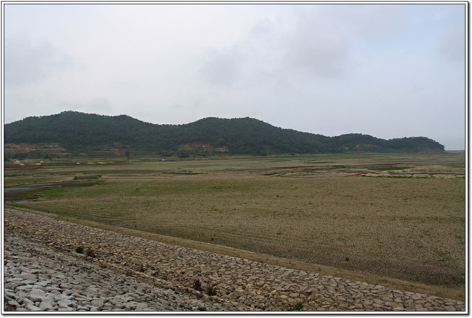 ▼ 이렇게 바닥이 드러날 줄이야 누가 알았으랴! 저수지 생긴이래 처음인 것 같다. 정말 황량한 벌판이다.
