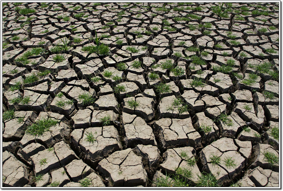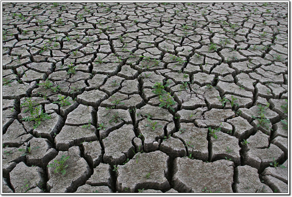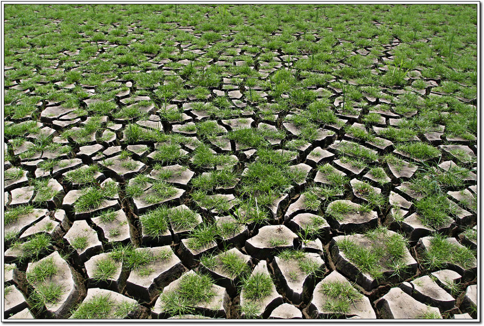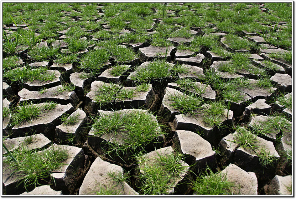 ▼ 모를 내고 난 후에 오지 않는 비는 논을 서서히 흰바닥으로 만들어 버렸다.