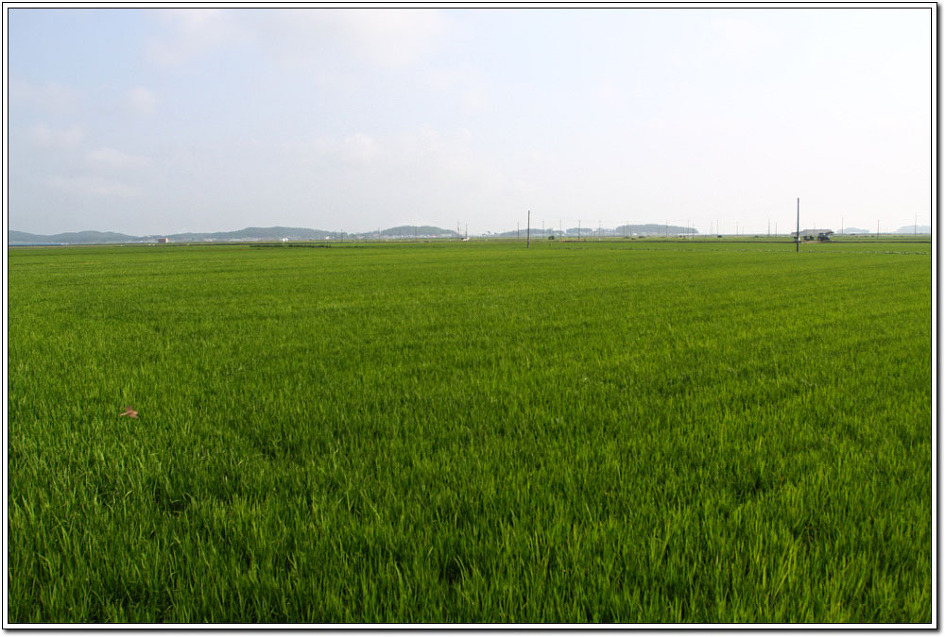 ▼ 그래도 교동은 이렇게 벼가 잘 생장하는 논이 많다. 강화도와는 달리 전봇대와 지하수 덕분이다. 강화는 들녘에 전봇대 없는 곳이 대부분이다. 지하수를 뚫는다 해도 모터펌프를 돌려야 하는 전선을 끌어 드릴 시설이 없고 그렇다고 지하수가 다 나오는 것도 아니기 때문에 앉아서 당할 수밖에 없는 것이다. 그러나 교동도는 개인적으로 모두 지하수를 파거나 정부에서 지원된 대형 관정을 뚫어 물을 나눠 쓴 덕이 아닌가 생각된다.