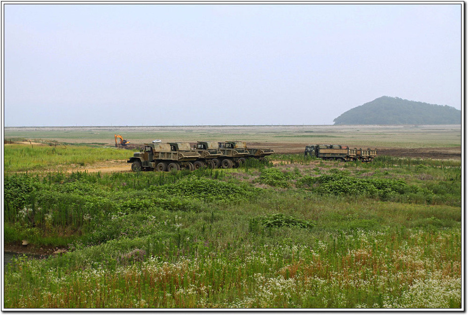 ▼ 난정저수지...이곳에도 어김없이 준설을 위해 군 공병대일까, 군트럭과 장비들이 보인다.