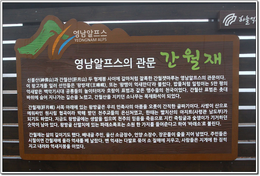 ♣ 코스: 배내고개-배내봉-간월산-간월재-신불산-신불재-영축산-비로암-극락암-통도사-주차장