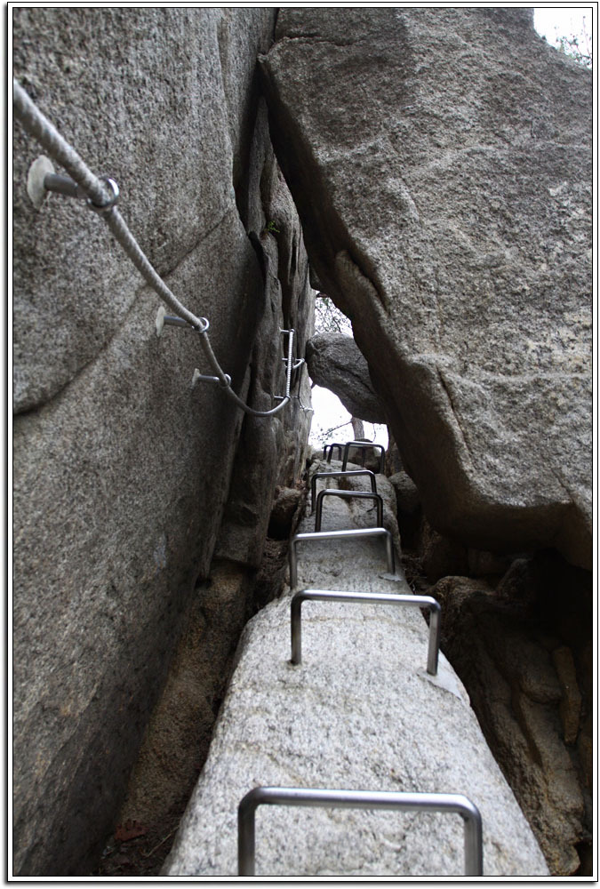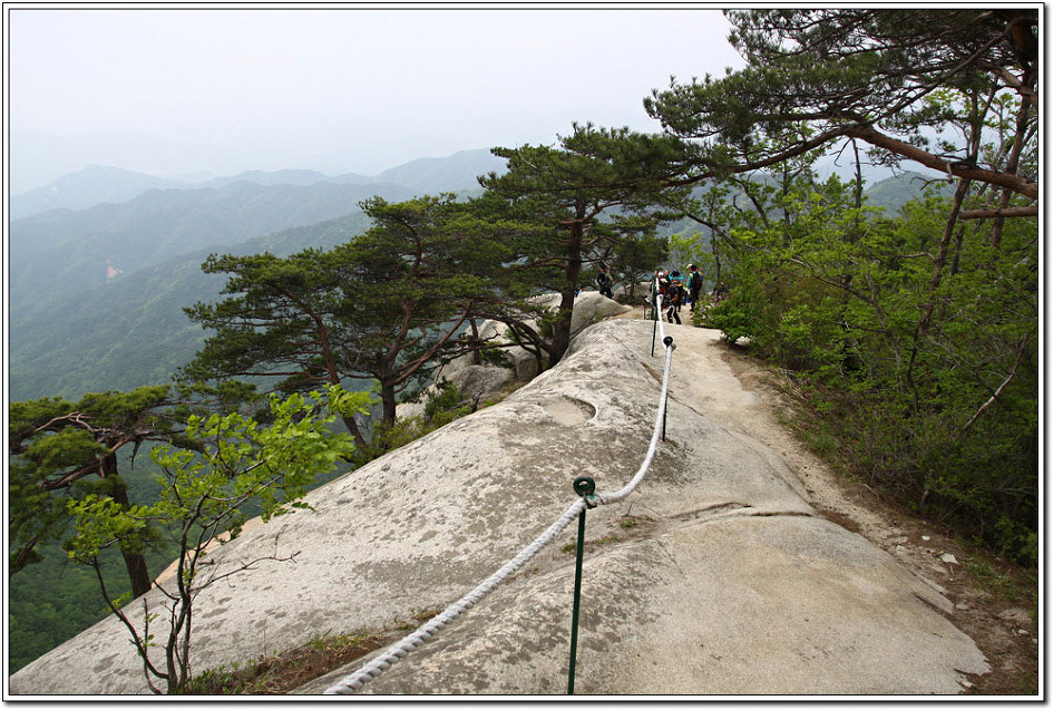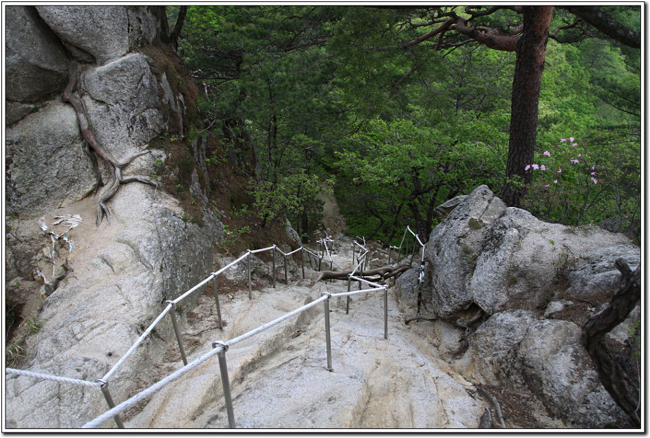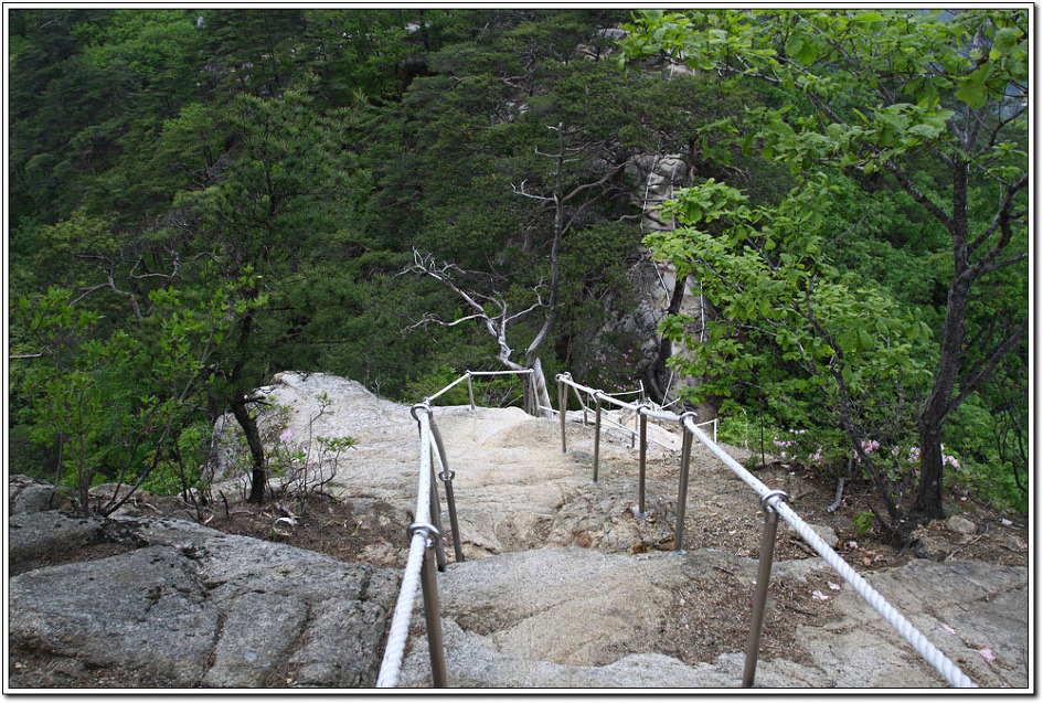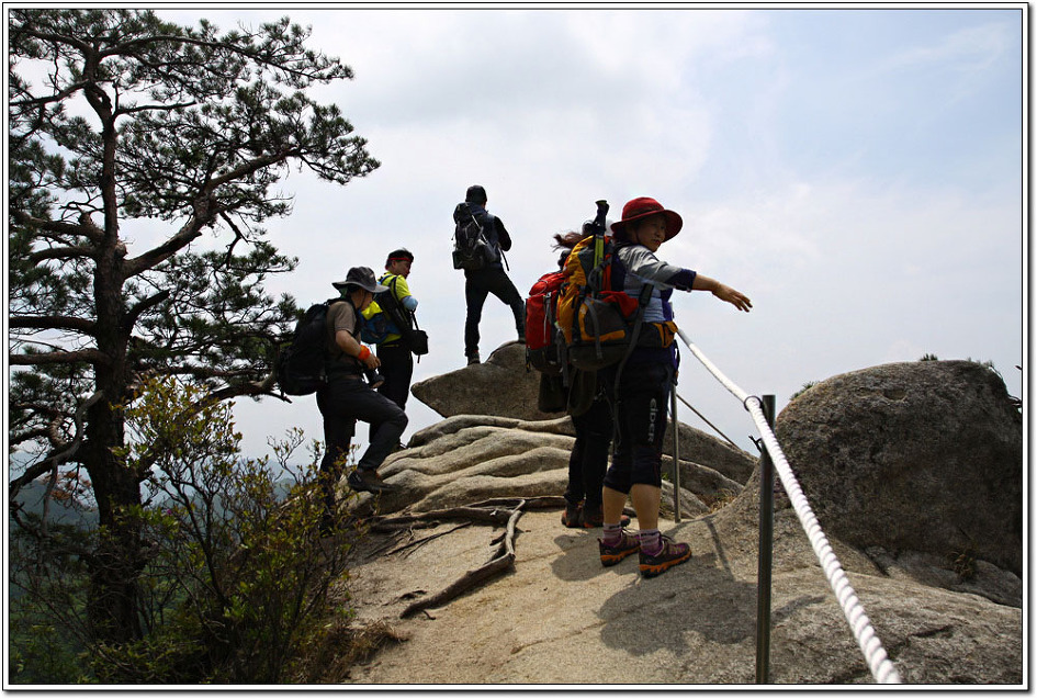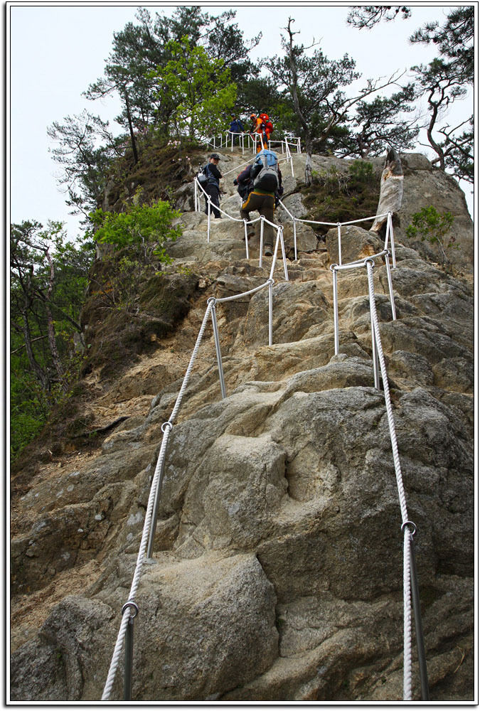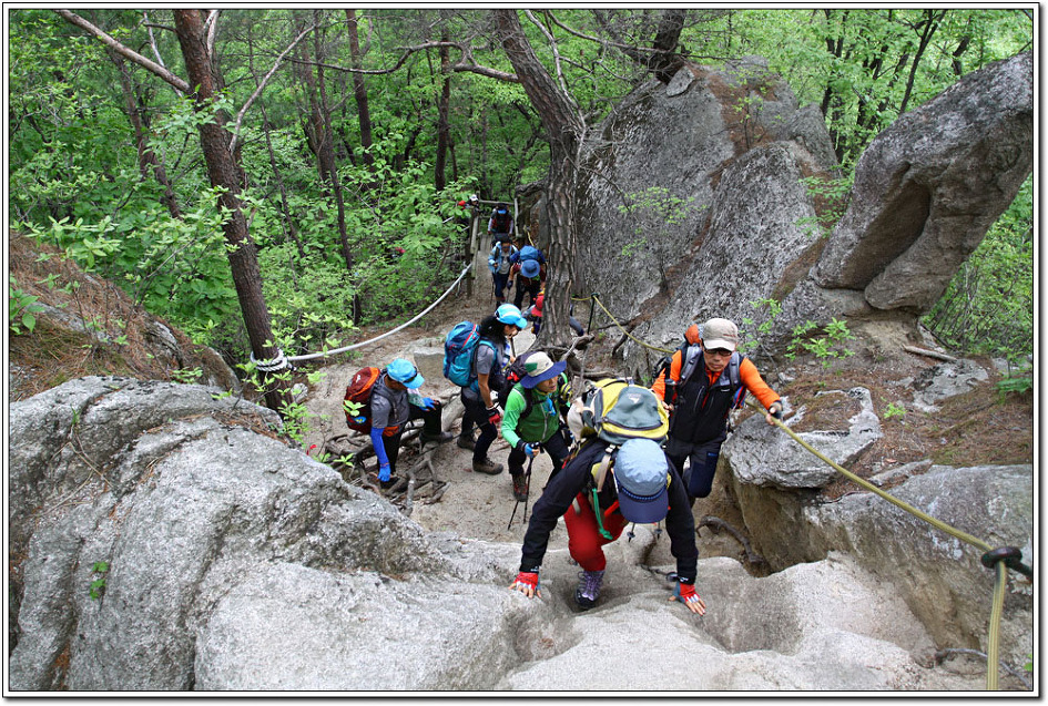 용화산이 그렇게 암벽으로 눈을 즐겁게 해주고 산행을 심심치 않게 해주리라고는 생각지 못했다. 역시 산은 늘 실망시키지 않는다. 다만, 하산을 거의 다할 무렵 빗방울이 떨어져 마지막 로프구간의 암릉으로 하산하지 못한 것이 아쉬움으로 남는다. 그러나 한번에 두마리의 토끼를 잡았다는 생각에 뭔가 뿌듯 하고 보람을 느끼는 기분이다.