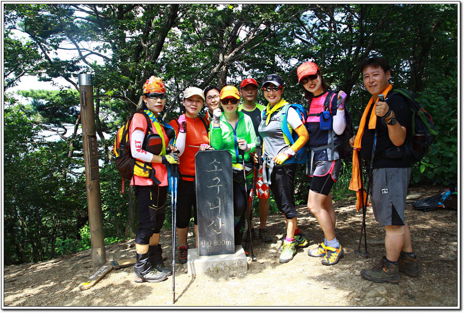 ▼ 들머리에서 한시간 올라 소구니산에 도착, 한컷 담아 본다.
