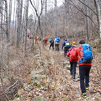 바람도 제법 부는지라 체감 온도는 더 떨어질 수 밖에 없지만 소백산의 칼바람에 비하면 사실 아무 것도 아니다. 등로는 임도를 따라 가끔 오가는 승용차를 귀찮을 만큼 피해야 할 정도로 편한 길이다. 태기산 정상을 곧바로 오를 수 있는 등로가 나타나고 출입을 못하도록 장애물로 막아놨지만 그 많은 산객들의 발걸음을 막을 수는 없는 듯 우회된 길로 급경사를 오르게 된다.