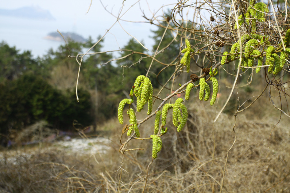 ▼ 오리나무 수꽃도 싱그럽고 탐스럽게 피었다.