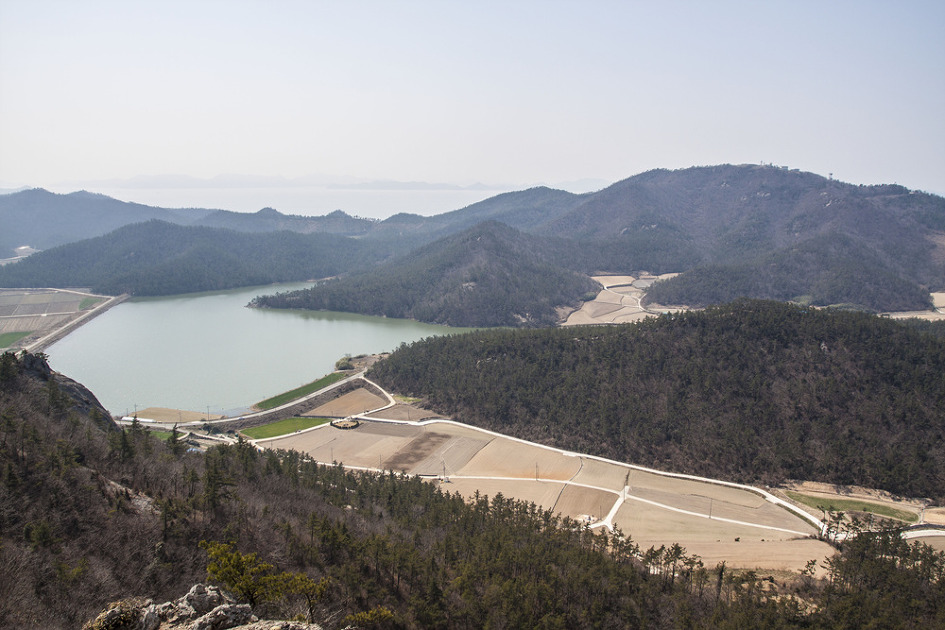 ▼ 동쪽으로는 남쪽의 심동저수지와 함께 봉암저수지가 위치해 있어 마치 바닷가와 같은 분위기다.