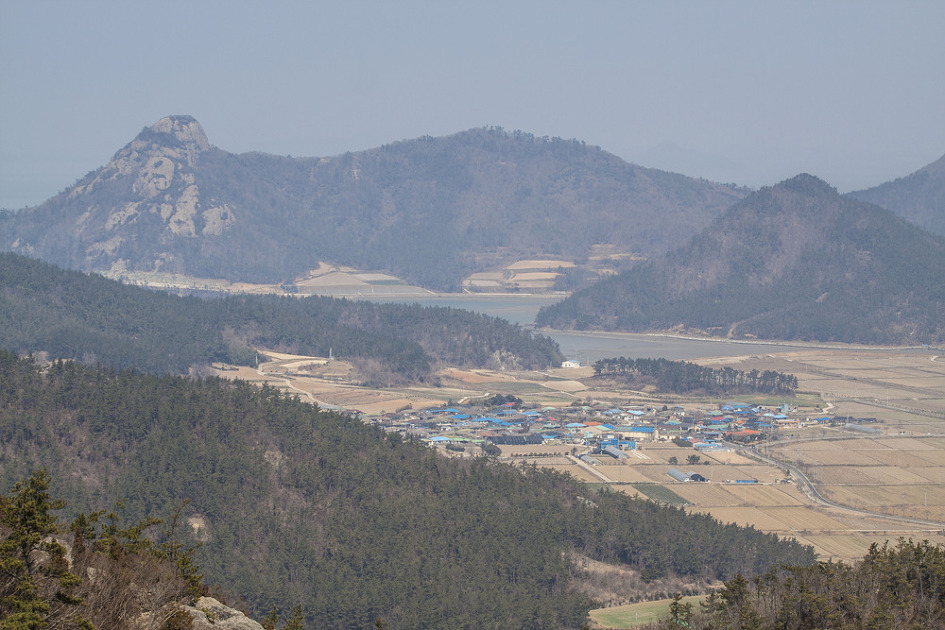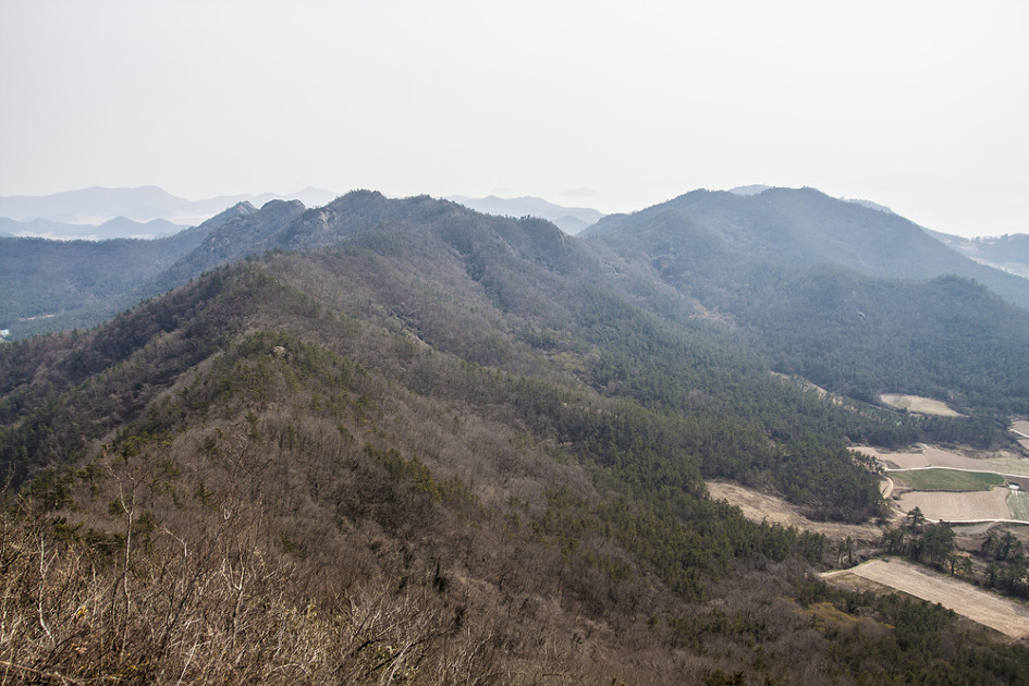 ▼ 두륜산이 멀리 포착되었다. 비록 미세먼지로 흐리긴 해도 윤곽이 뚜렷하다. 그 넘어로 주작산, 덕룡산이 자리잡고 있을 것이다.