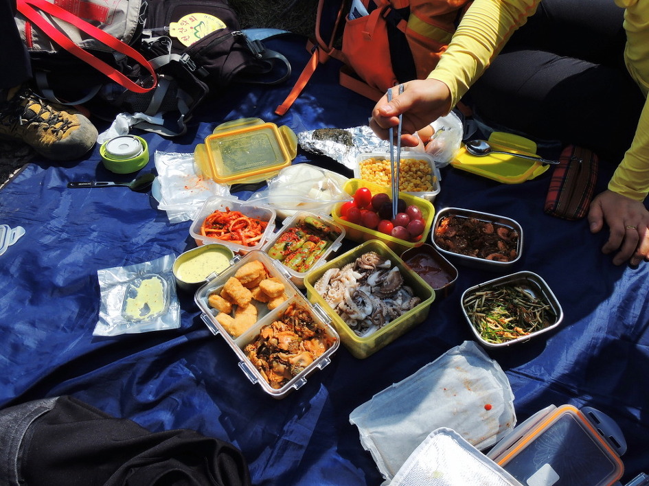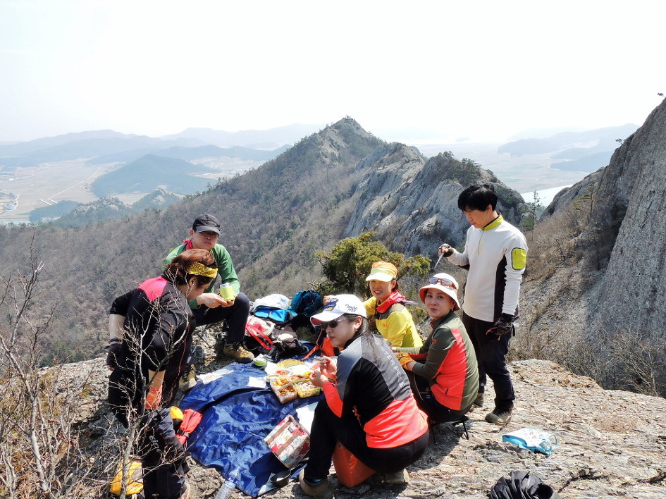 ▼ 대원들이 뿔뿔이 흩어져 함께 산행하는 산우들끼리 삼삼오오 모여 점심을 먹는데 주변 풍경에 입맛이 절로 돈다.
