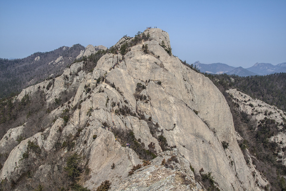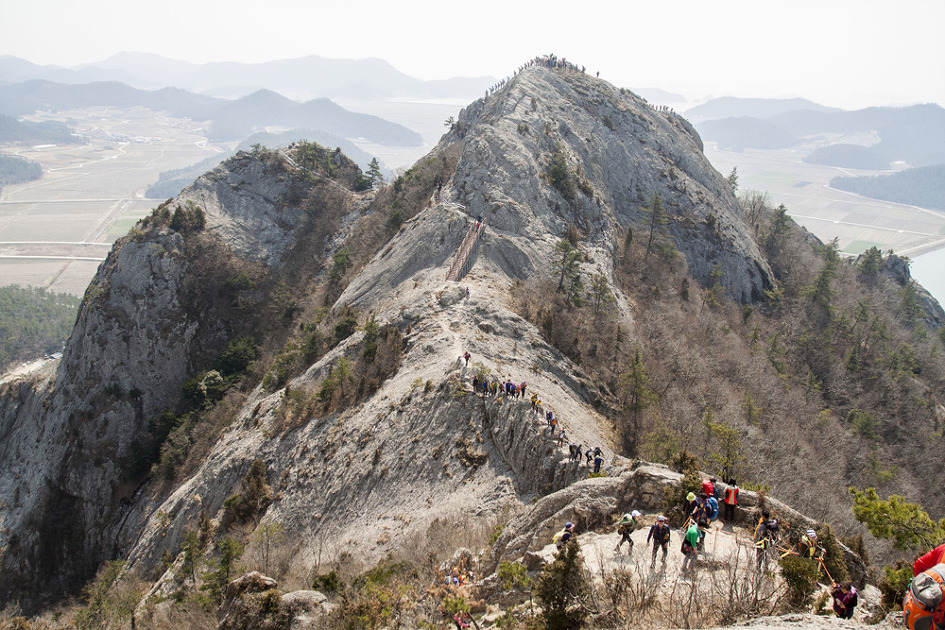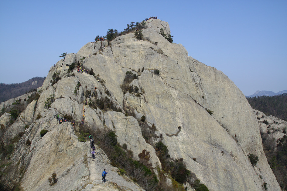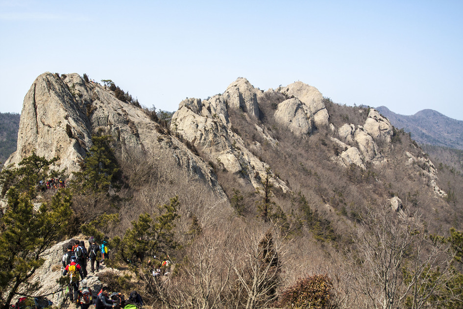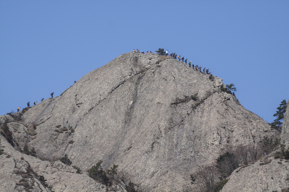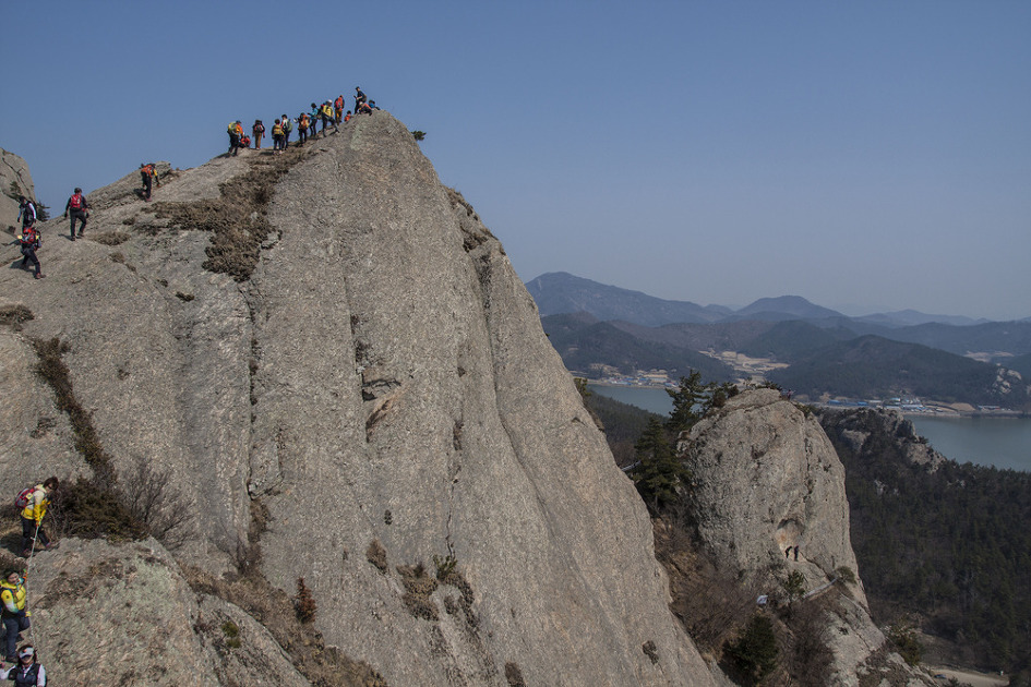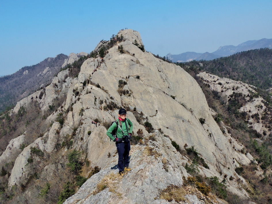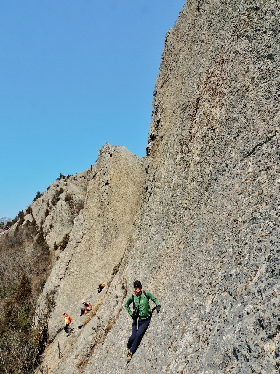 오늘따라 전국에서 모여든 산악회원들이 한꺼번에 몰리면서 산행이 지체되어 불과 5.5km의 거리를 4시간 30분이나 걸렸으니 이건 산행이 아니라 산책이다. 산행 초보자들이 겁을 먹어 오르거나 내려가길 더디하면 당연히 시간이 지체될 수 밖에 없다. 거기다가 사진찍기에 모두가 몰두하여 난리도 아니다.