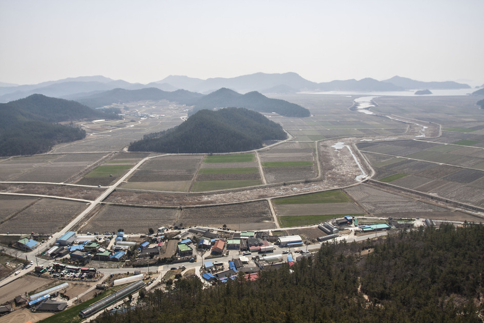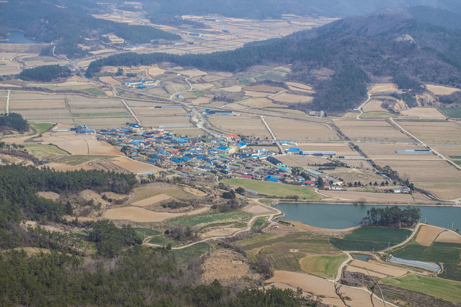 ▼ 골짜기마다 밭은 무슨 곡식, 채소를 심으려는지 곱게 단장했다.